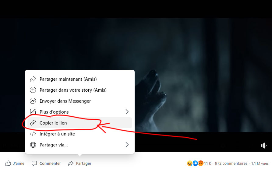 Copy the Facebook video URL